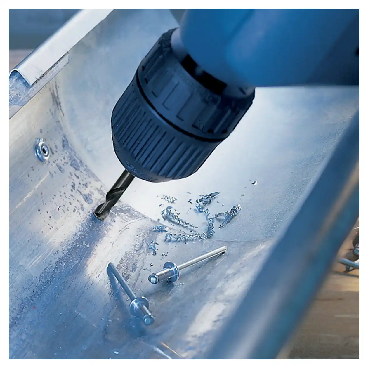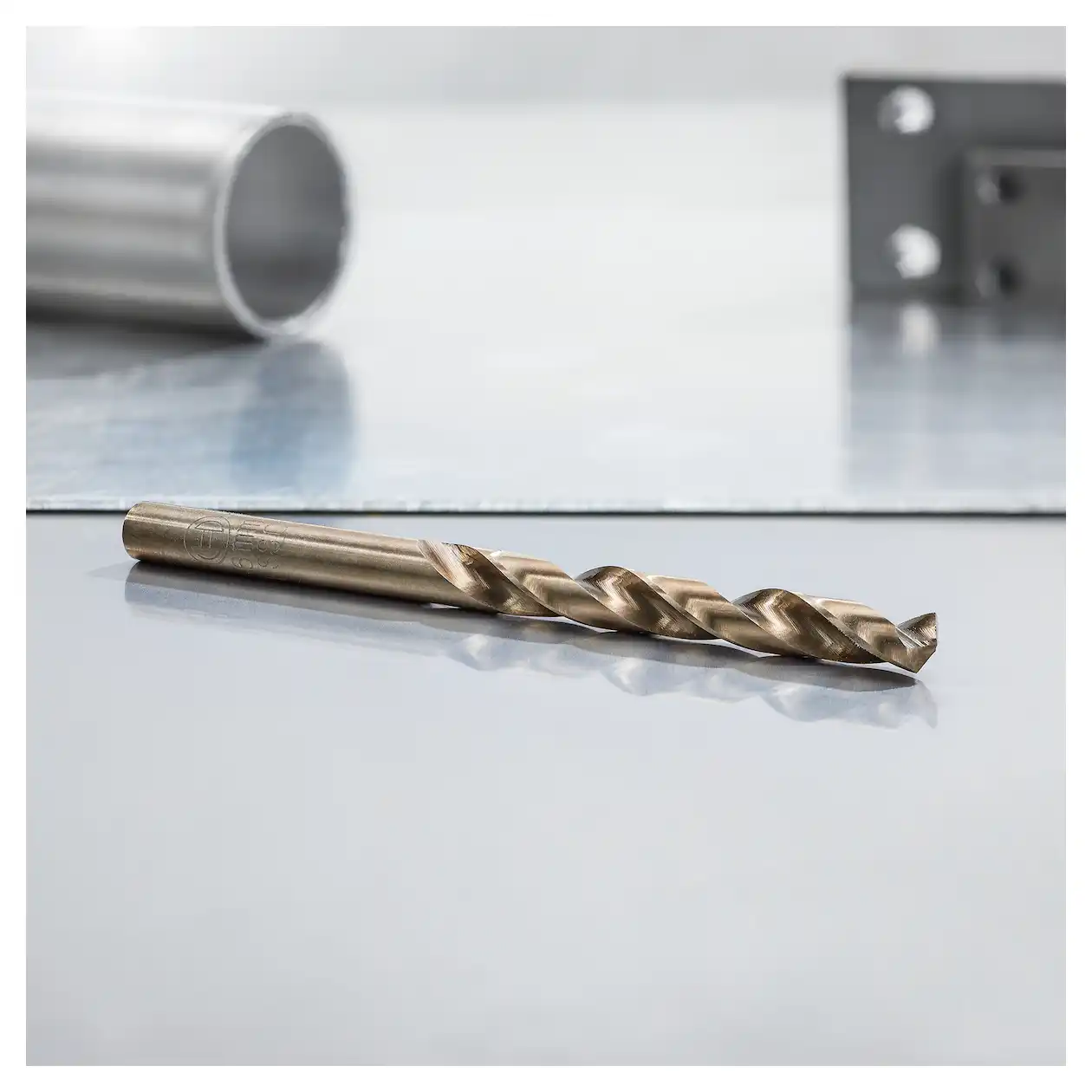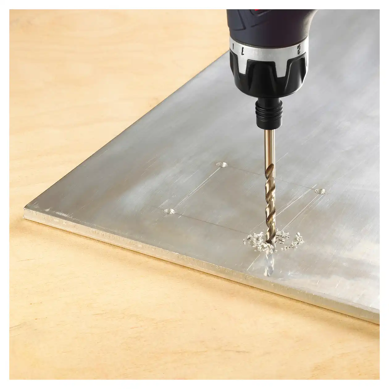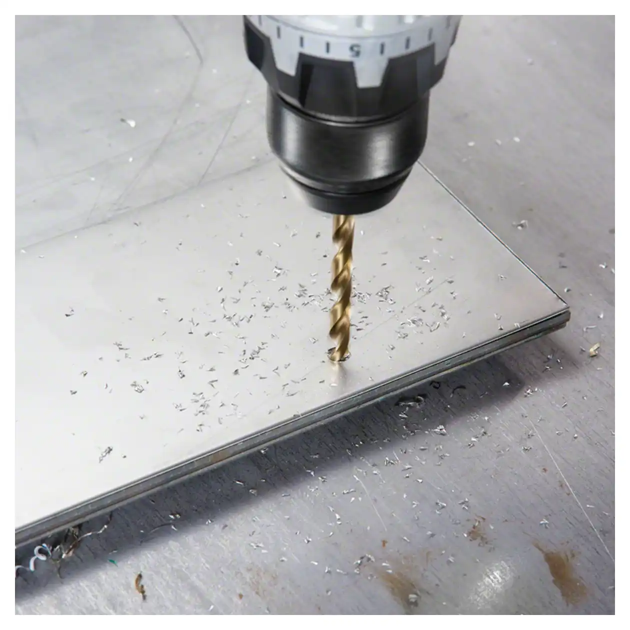 - La broca helicoidal de cobalto de HSS proporciona un rendimiento duradero para perforar acero inoxidable.
