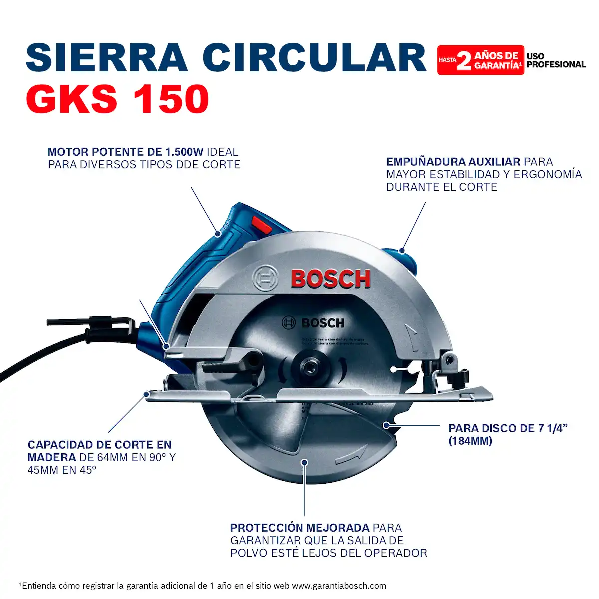 - Sierra circular 7-1/4″ 1500W BOSCH GKS 150